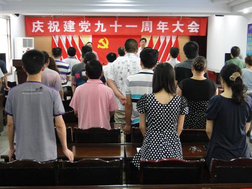 司金強(qiáng)首先代表大隊(duì)黨委向辛勤奮斗在全隊(duì)各個(gè)崗位上的黨務(wù)工作者和新老黨員致以節(jié)日問(wèn)候,向受到表彰的先進(jìn)組織和先進(jìn)個(gè)人表示熱烈祝賀!在深情回顧中國(guó)共產(chǎn)黨91年的光輝歷程后,他說(shuō),我們的黨是富于創(chuàng)新精神,不斷開拓進(jìn)取、與時(shí)俱進(jìn)的黨;是經(jīng)得起各種考驗(yàn),勇于在困難和挫折中奮進(jìn)的黨; 是忠實(shí)實(shí)踐“三個(gè)代表”,腳踏實(shí)地為人民群眾根本利益奮斗不息的黨。每一名共產(chǎn)黨員都應(yīng)為此而感到光榮和自豪。