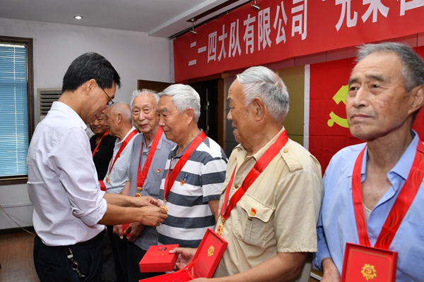 公司50年以上黨齡的老黨員共有61位,多數(shù)為80歲以上的老同志,為做好“光榮在黨50年”紀(jì)念章頒發(fā)工作,公司黨委同時安排黨群工作部和離退休黨總支部有關(guān)人員上門走訪慰問了行動不便的高齡老黨員,為他們頒發(fā)佩戴“光榮在黨50年”紀(jì)念章,并叮囑他們保重身體。