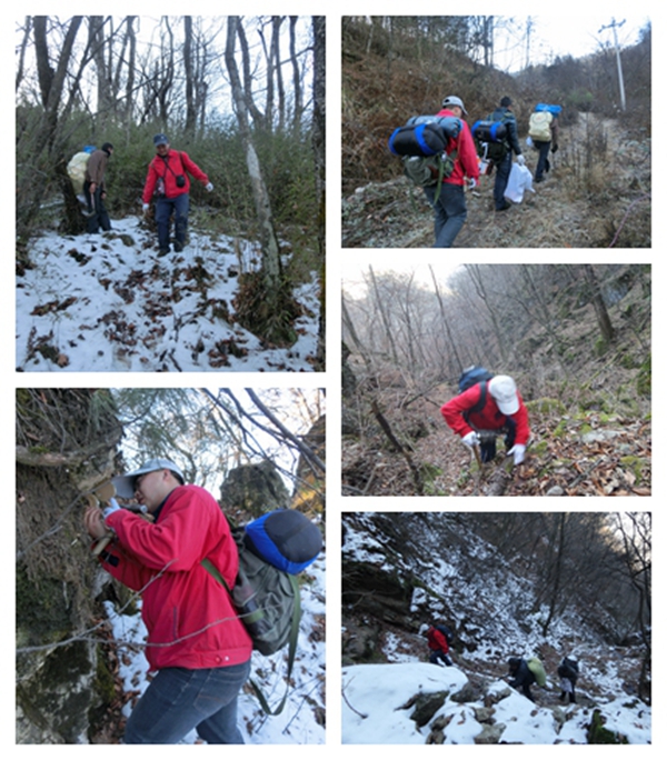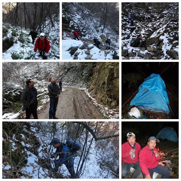 為了確保突擊效果和安全,經(jīng)反復(fù)論證,公司地調(diào)院成立了由高政偉和朱文棟兩名黨員帶隊組成2個找礦突擊組,各組由2名黨員、2名民工組成,他們攜帶干糧、帳篷等野外作業(yè)、生存必備的工具,從石槽河兩條主溝由北向南穿越找礦。公司總工程師王義忠也以身作則加入到朱文棟帶隊的突擊小組。突擊小組發(fā)揚“四個特別”和“三光榮”精神,不畏艱險和寒冷,在冰天雪地中艱難前進,餓了吃點干糧、渴了以雪當飲,晚上在帳篷中露宿,徒步2天分別翻越“摩天嶺”海拔2180米的“天上”和2080米的“南天門”高峰進入作業(yè)區(qū),通過認真仔細觀測,終于找到了晶質(zhì)石墨礦帶。突擊隊在采集完樣品后,又負重艱難跋涉走出叢林,勝利完成了此次突擊任務(wù)。