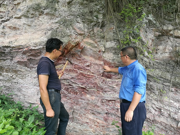王義忠一行首先對野外地質(zhì)露頭進(jìn)行了實地查看、追索,并提出指導(dǎo)意見。