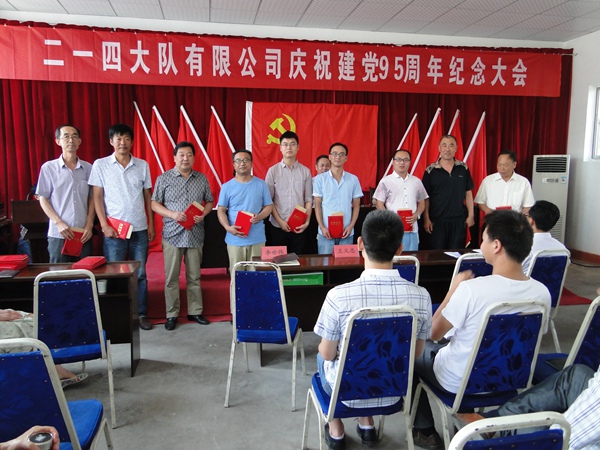 2016年6月29日上午,二一四大隊(duì)有限公司隆重召開慶祝建黨95周年暨先進(jìn)黨支部、優(yōu)秀共產(chǎn)黨員表彰大會。公司領(lǐng)導(dǎo)、中層干部、全體黨員及入黨積極分子共70余人參加了會議。會議由黨委委員、副總經(jīng)理司金強(qiáng)同志主持。