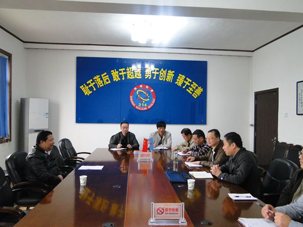 2016年4月14日,中陜核工業(yè)集團(tuán)監(jiān)事會(huì)主席吳蘇平到二一四大隊(duì)有限公司城固基地調(diào)研指導(dǎo)工作。