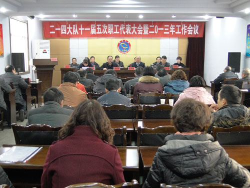 1月10日至11日,大隊(duì)十一屆五次職工代表大會暨二〇一三年工作會議在機(jī)關(guān)三樓會議室隆重召開。來自全隊(duì)各單位和部門的60多名代表參加了會議。